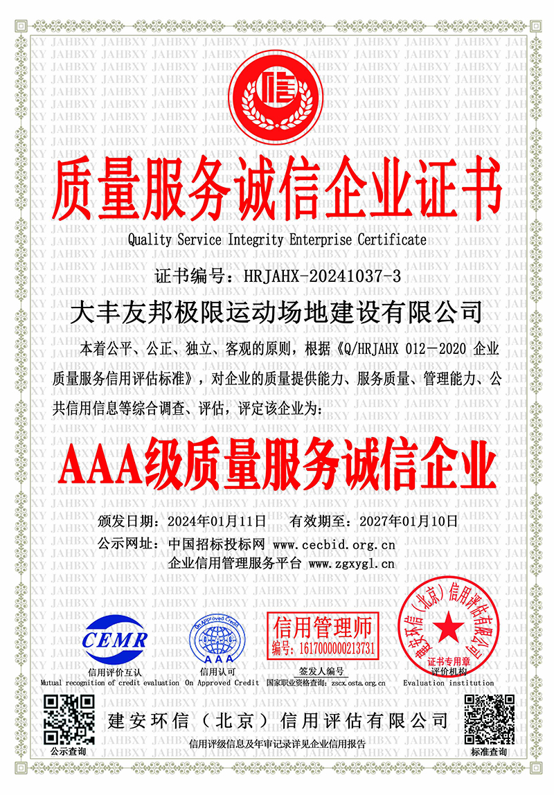 質(zhì)量服務(wù)誠(chéng)信證書(shū)